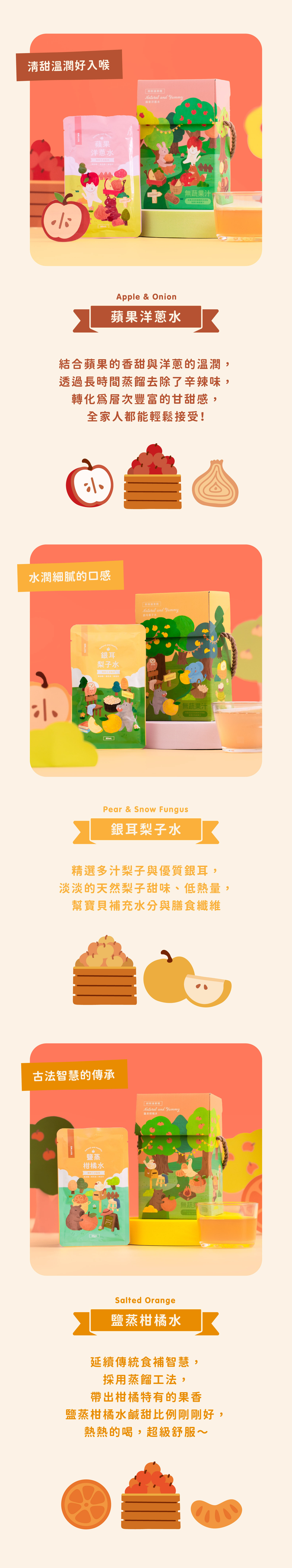 *新口味上市!蘋果洋蔥水、銀耳梨子水、鹽蒸柑橘水