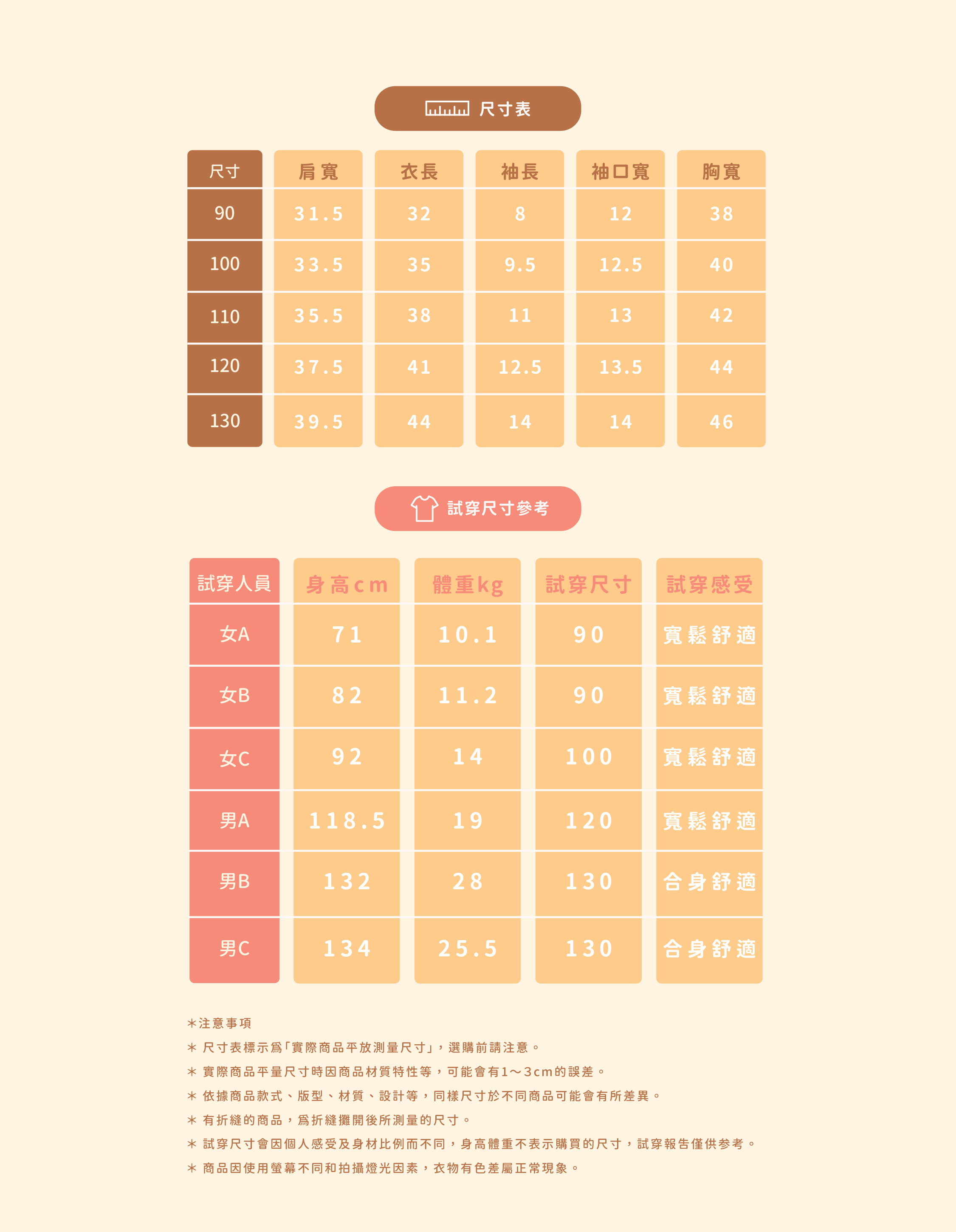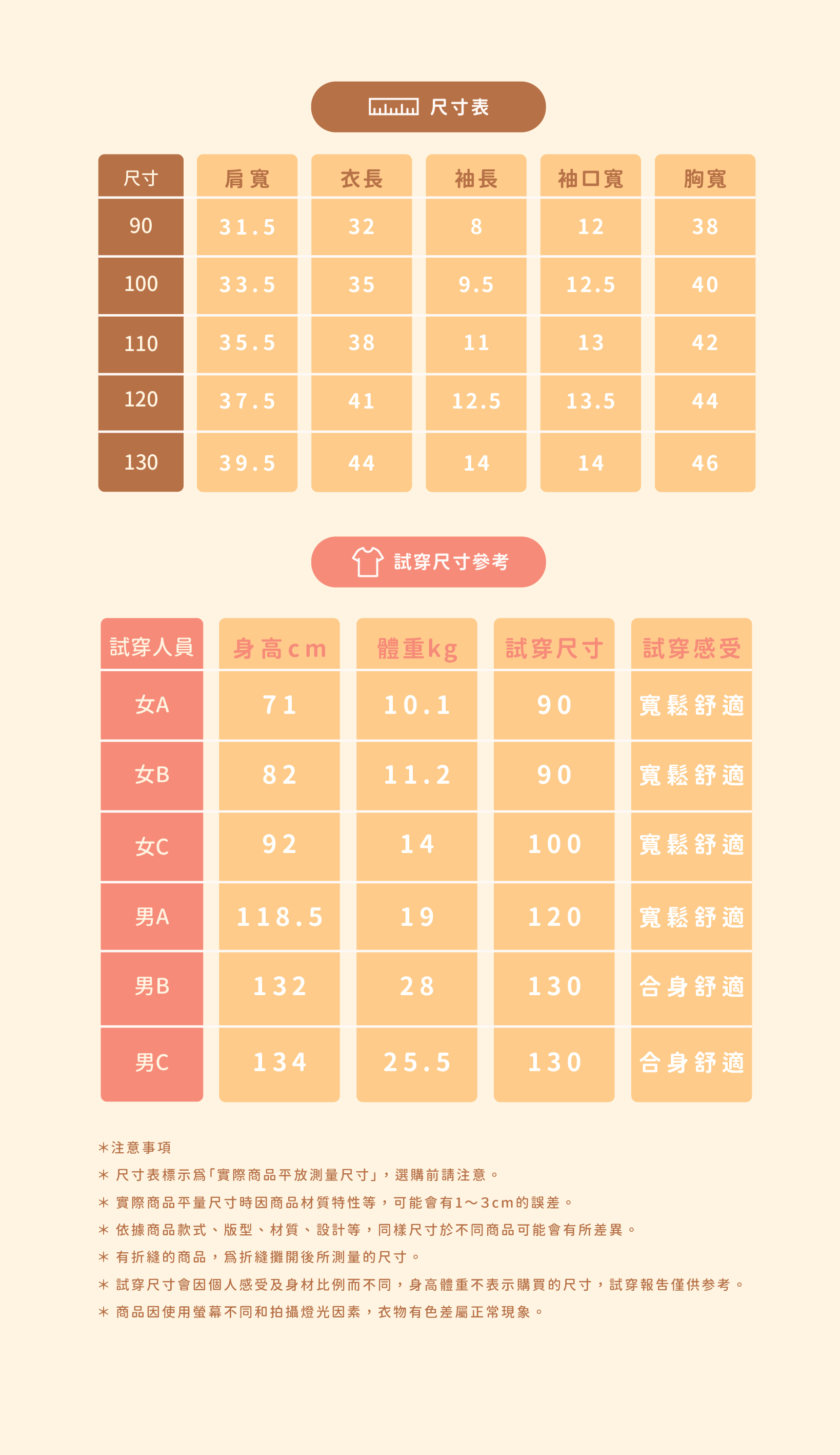 *童裝版型偏寬鬆,請詳閱尺寸表後下單