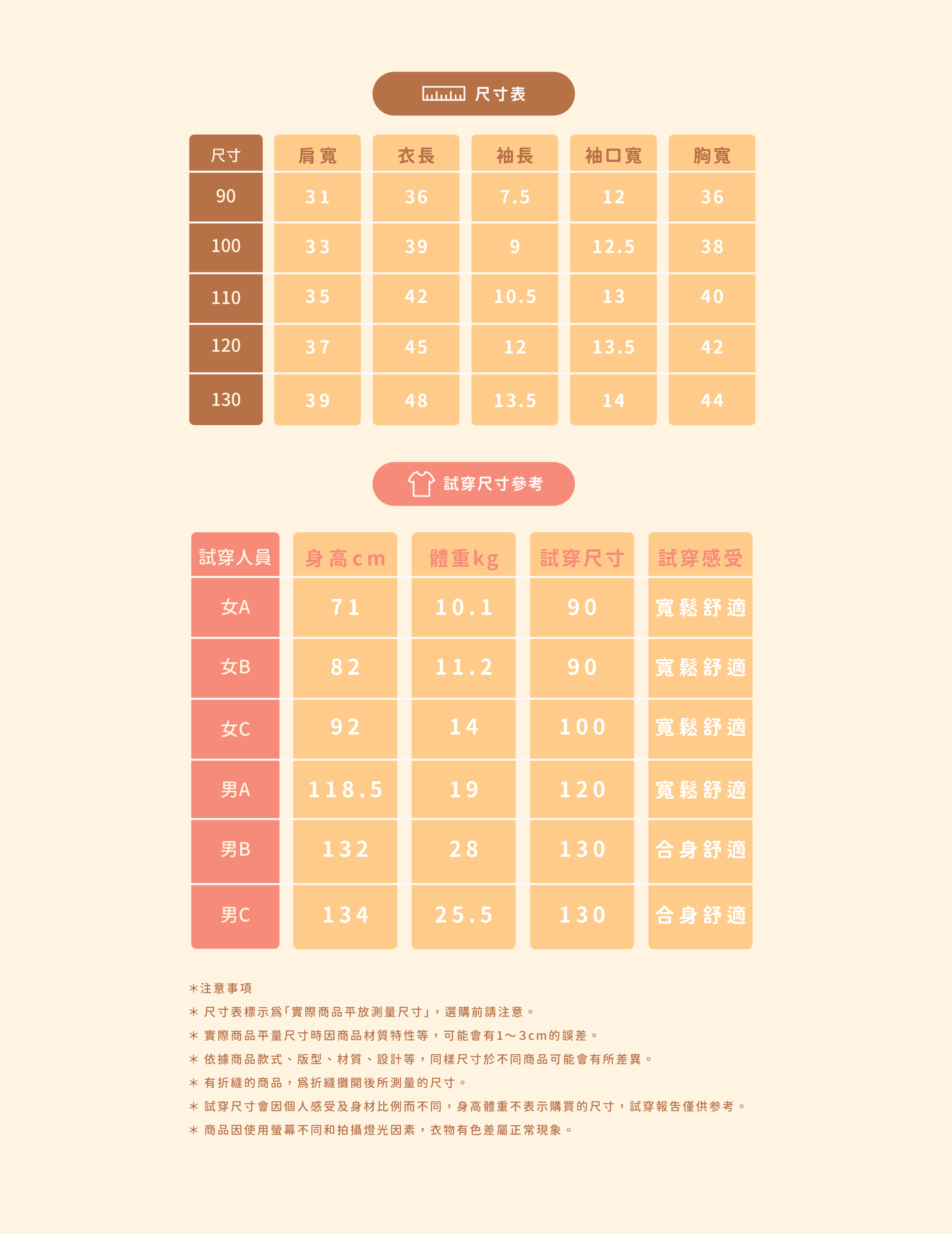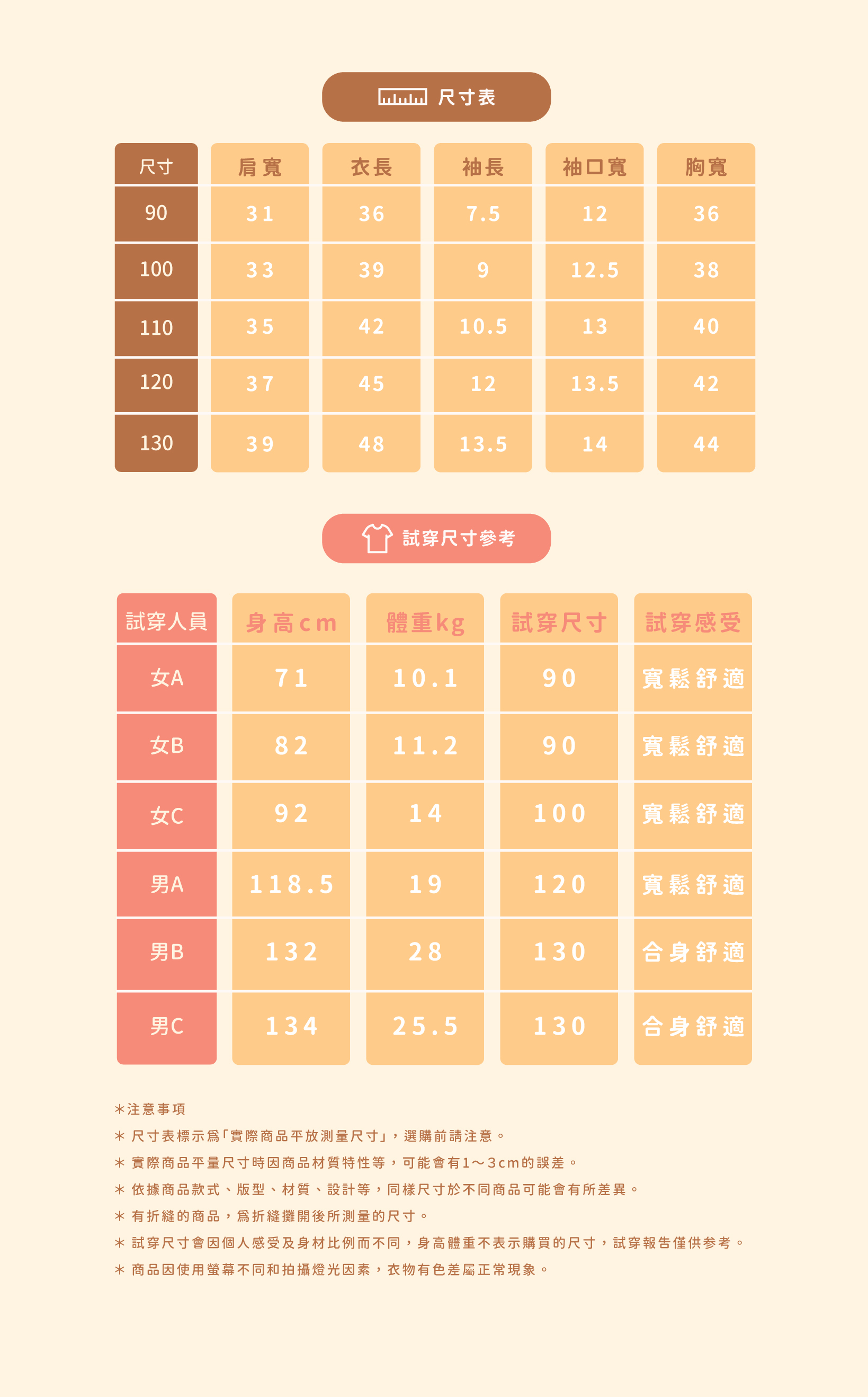*童裝版型偏寬鬆,請詳閱尺寸表後下單
