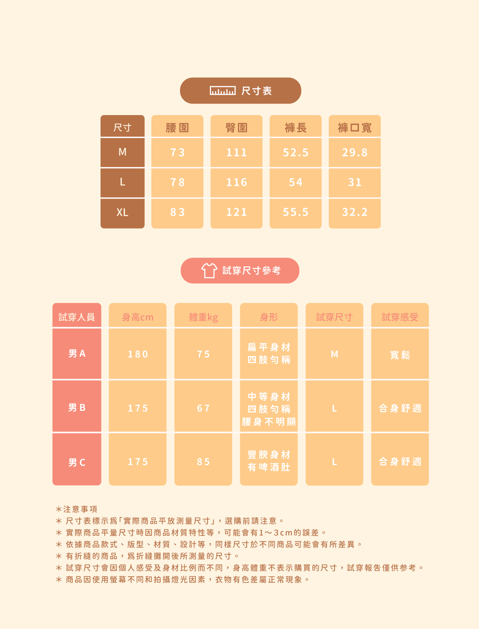 *因穿著習慣有所差異,請詳閱尺寸表後下單