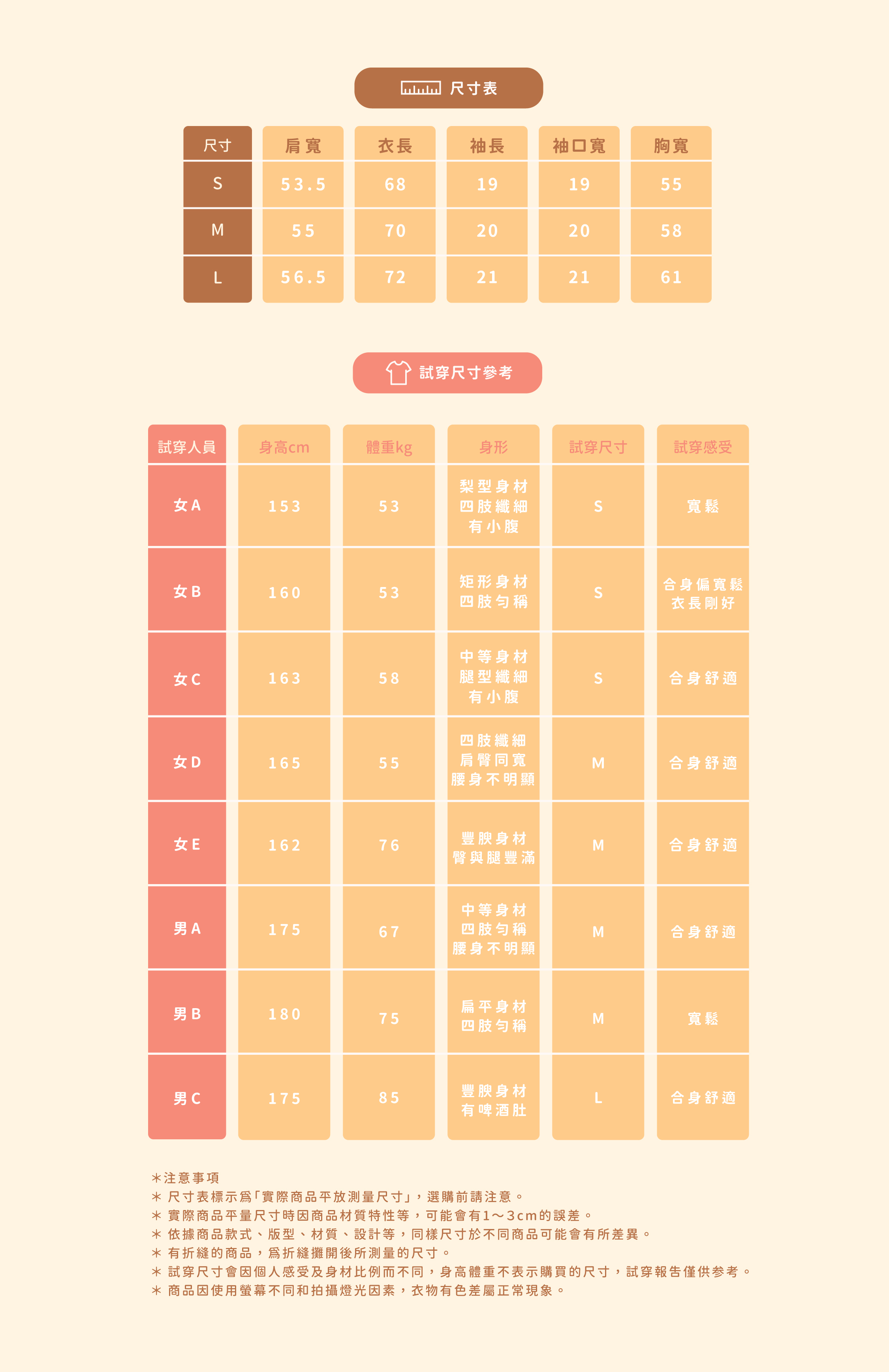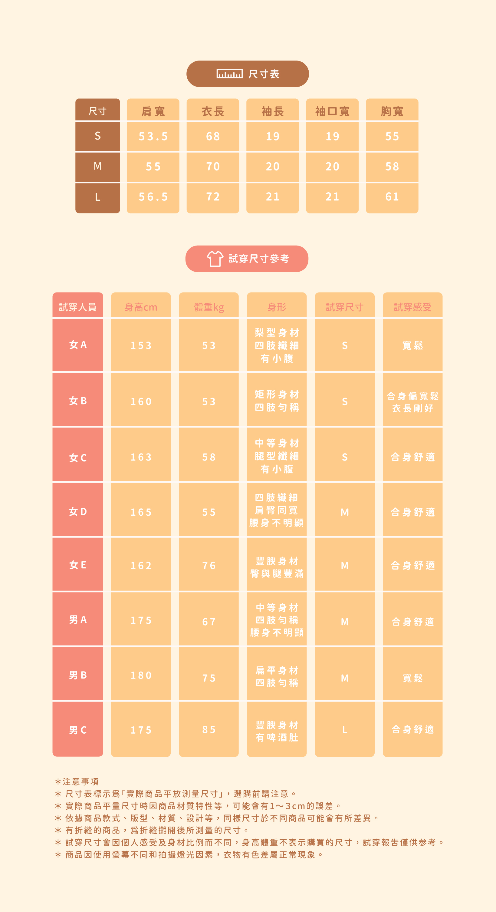 *成人衣服版型偏寬鬆,請詳閱尺寸表後下單