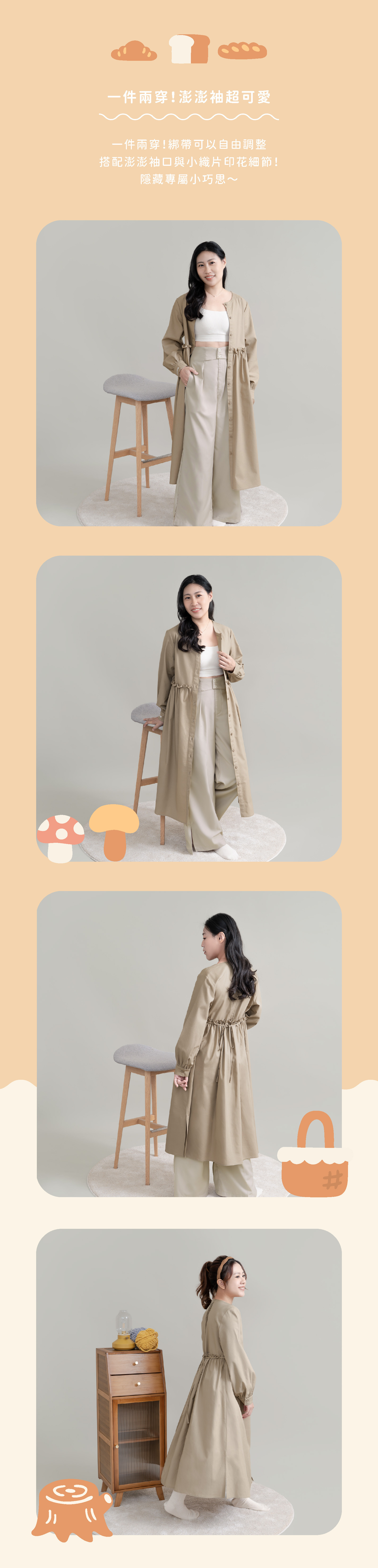 *搭配澎澎袖口與小織片印花細節!藏著專屬小巧思