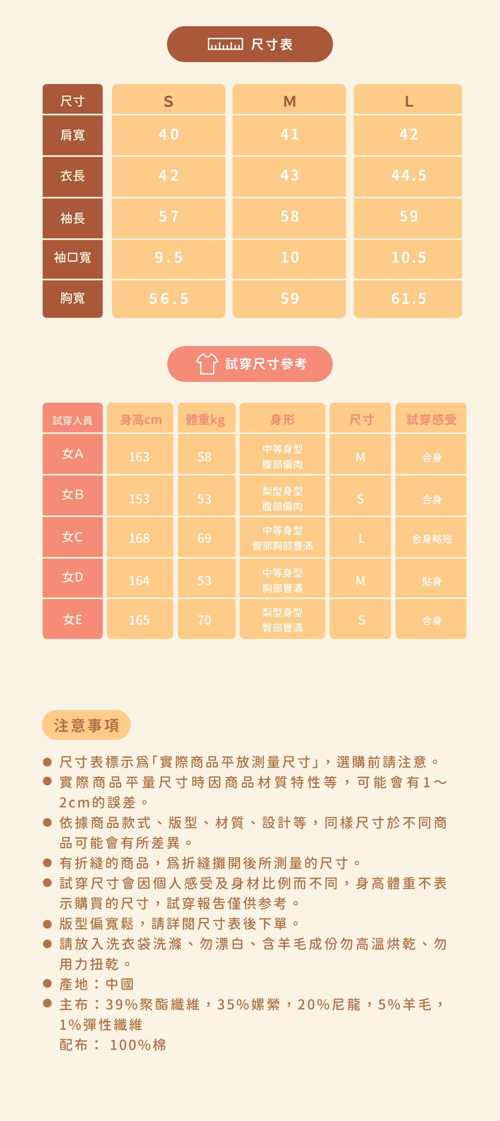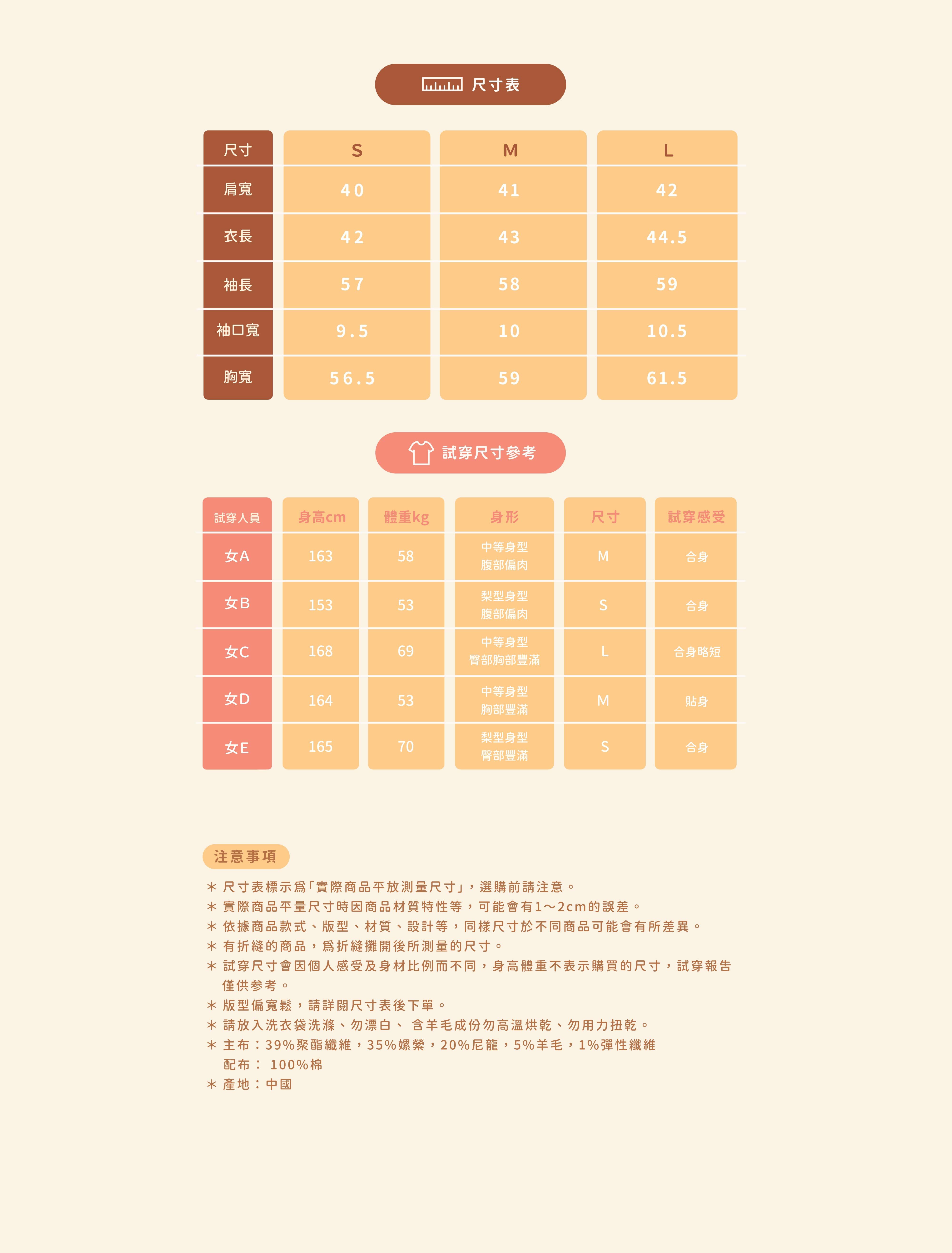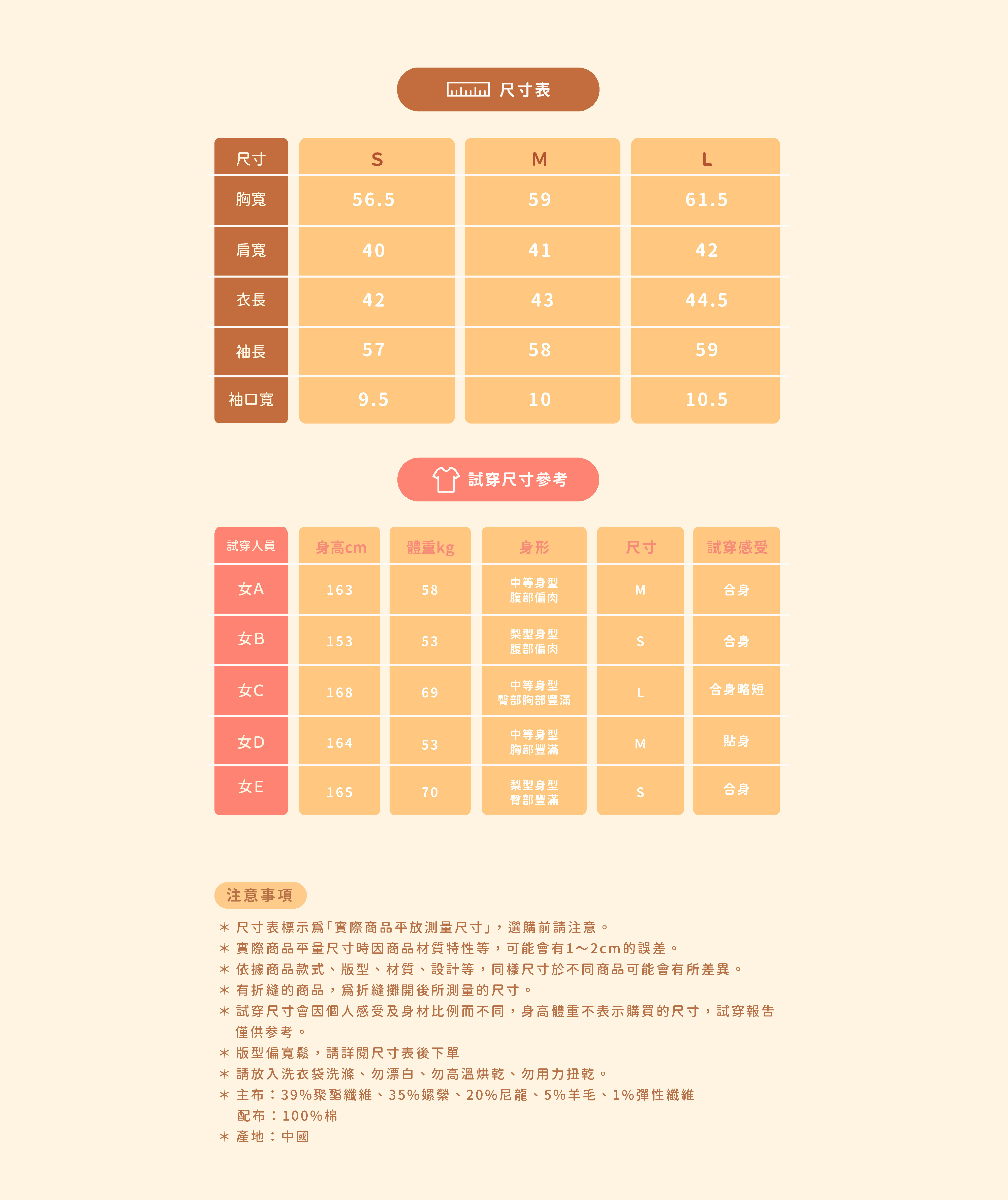 *因穿著習慣有所差異,請詳閱尺寸表後下單