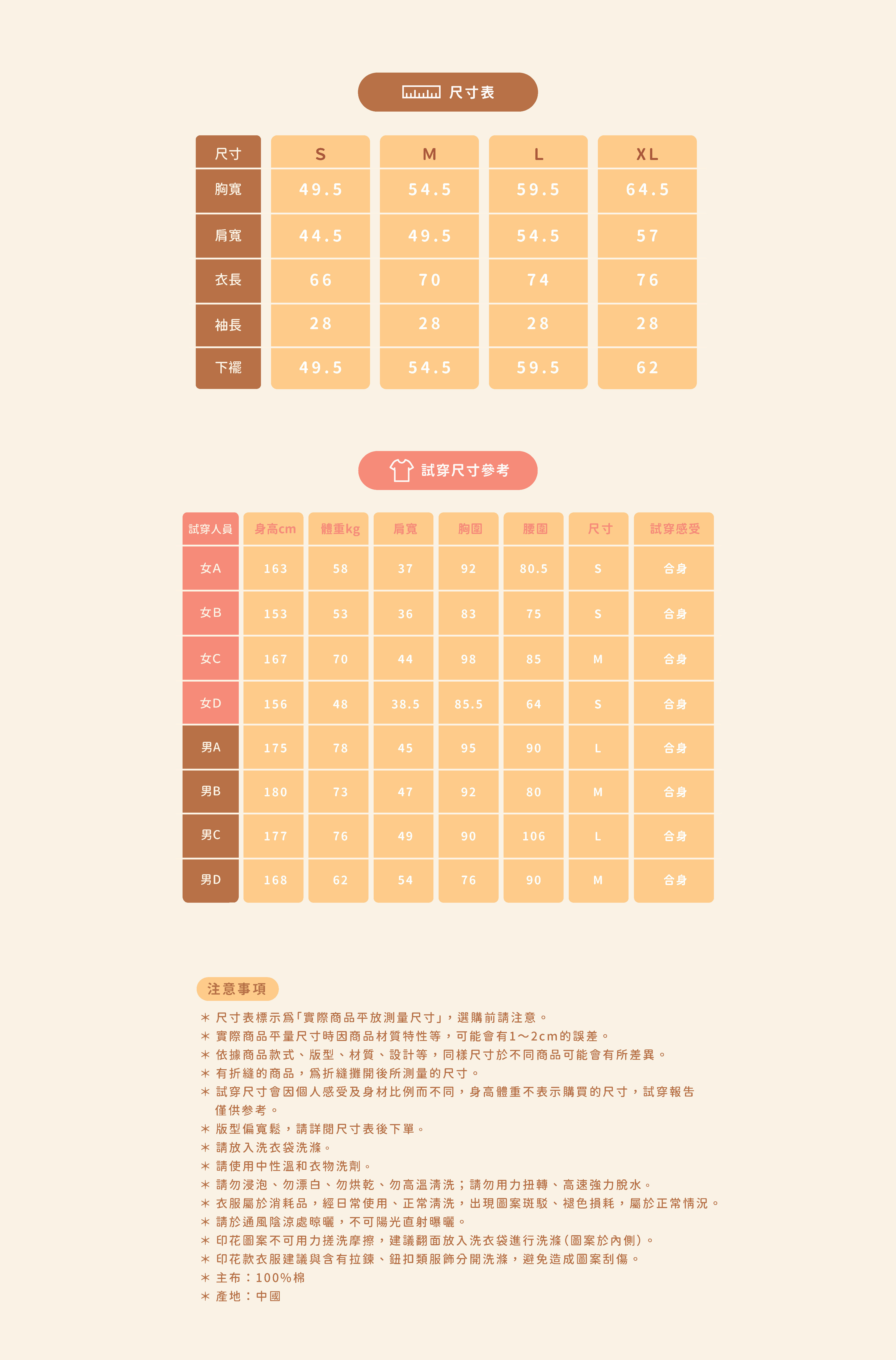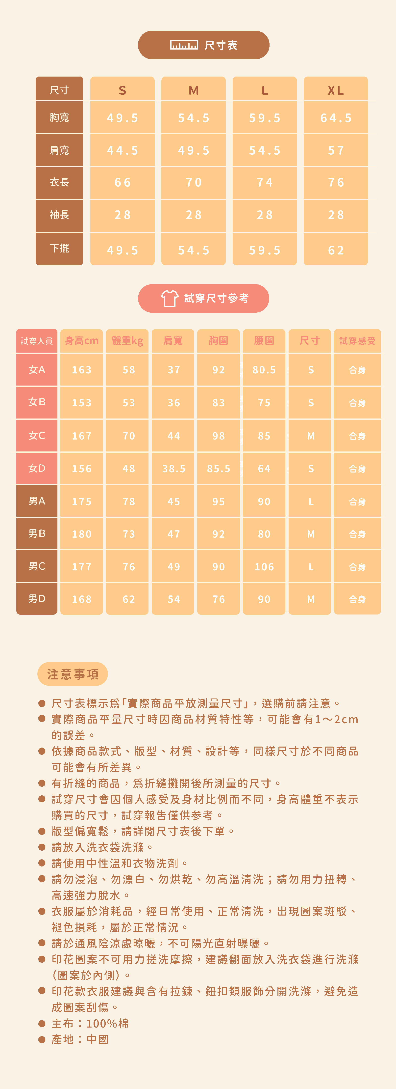 *因穿著習慣有所差異,請詳閱尺寸表後下單