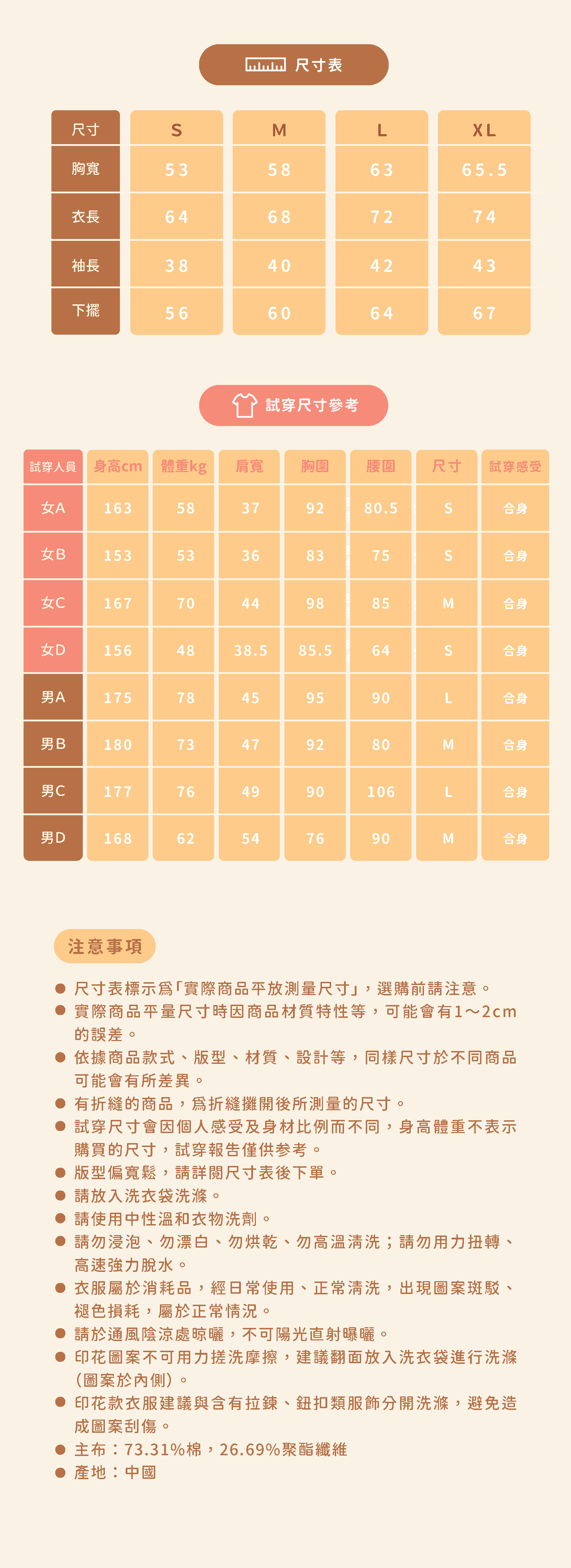 *因穿著習慣有所差異,請詳閱尺寸表後下單