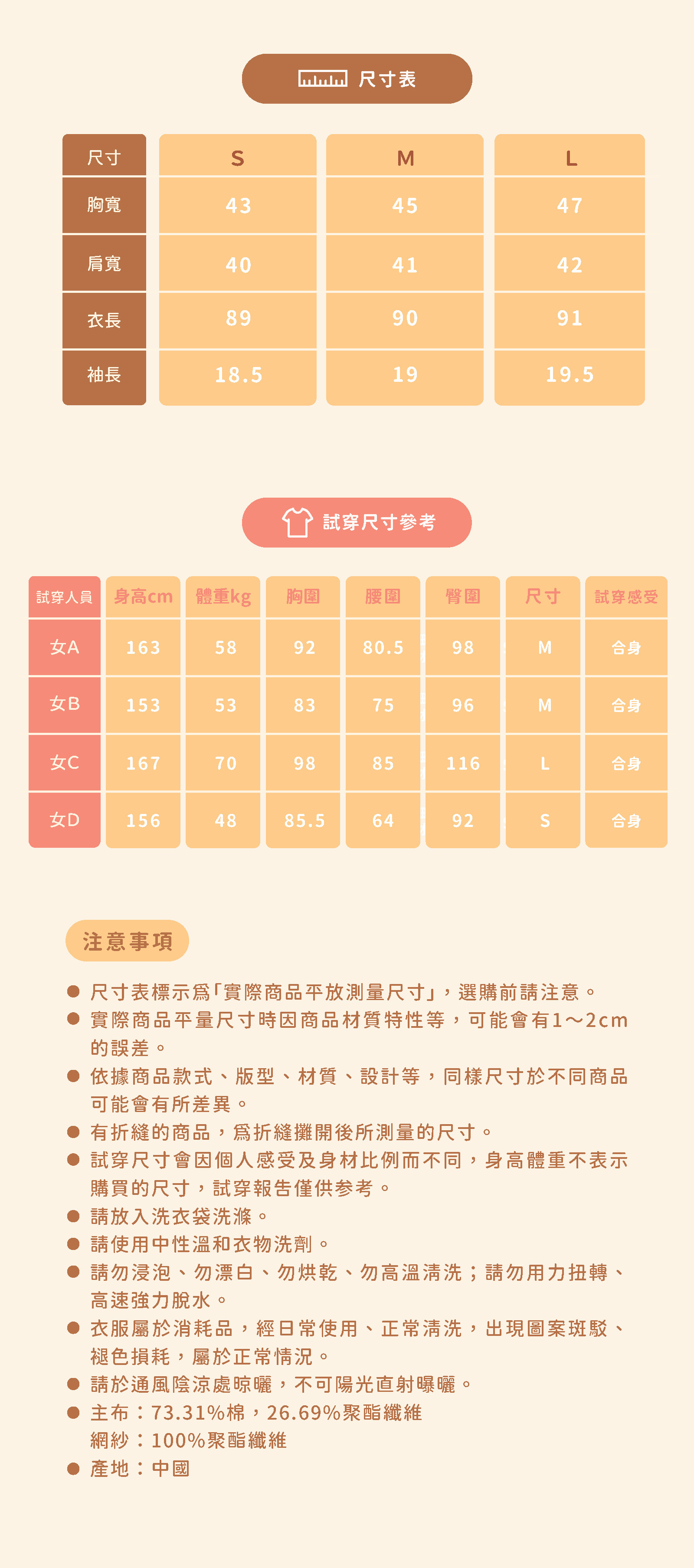 *因穿著習慣有所差異,請詳閱尺寸表後下單
