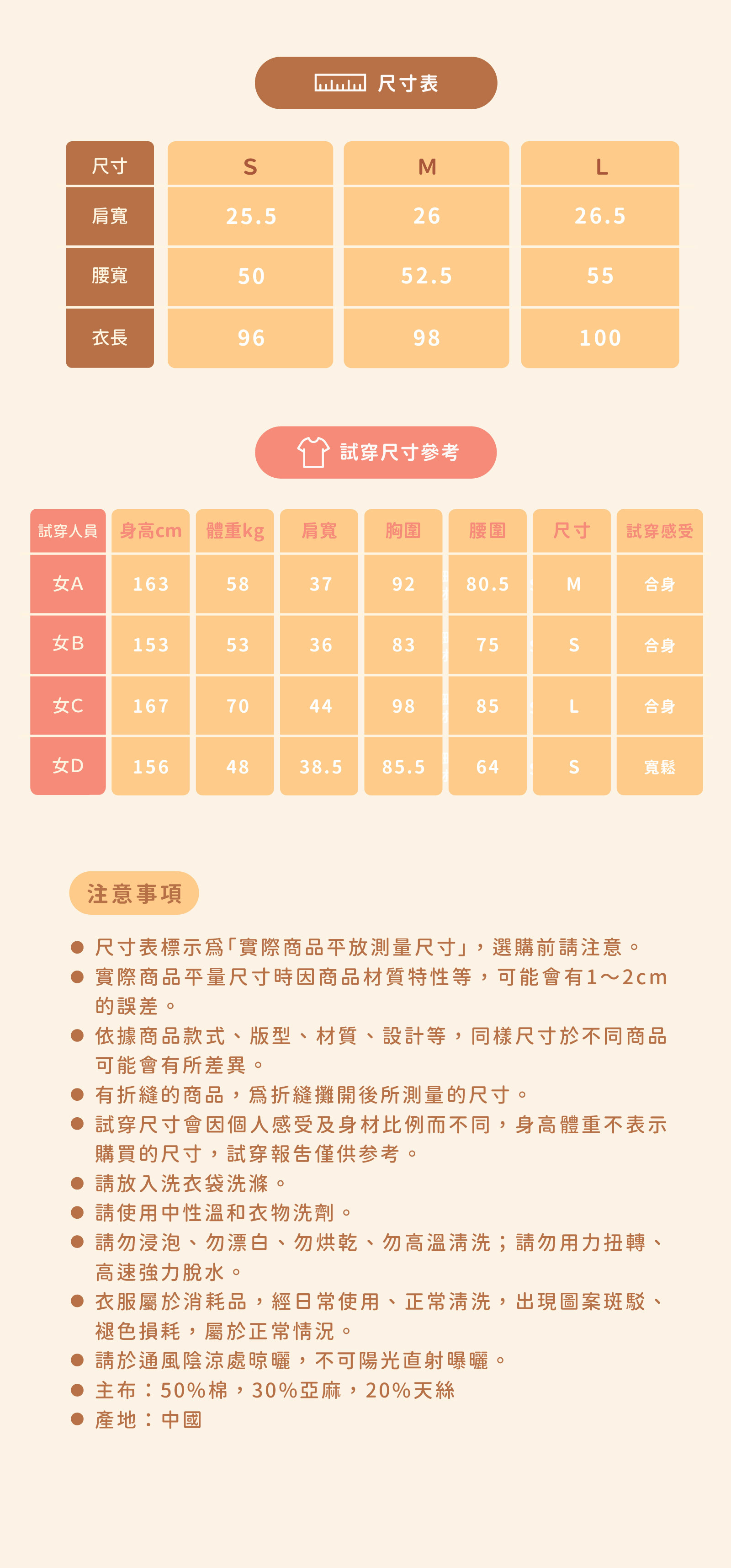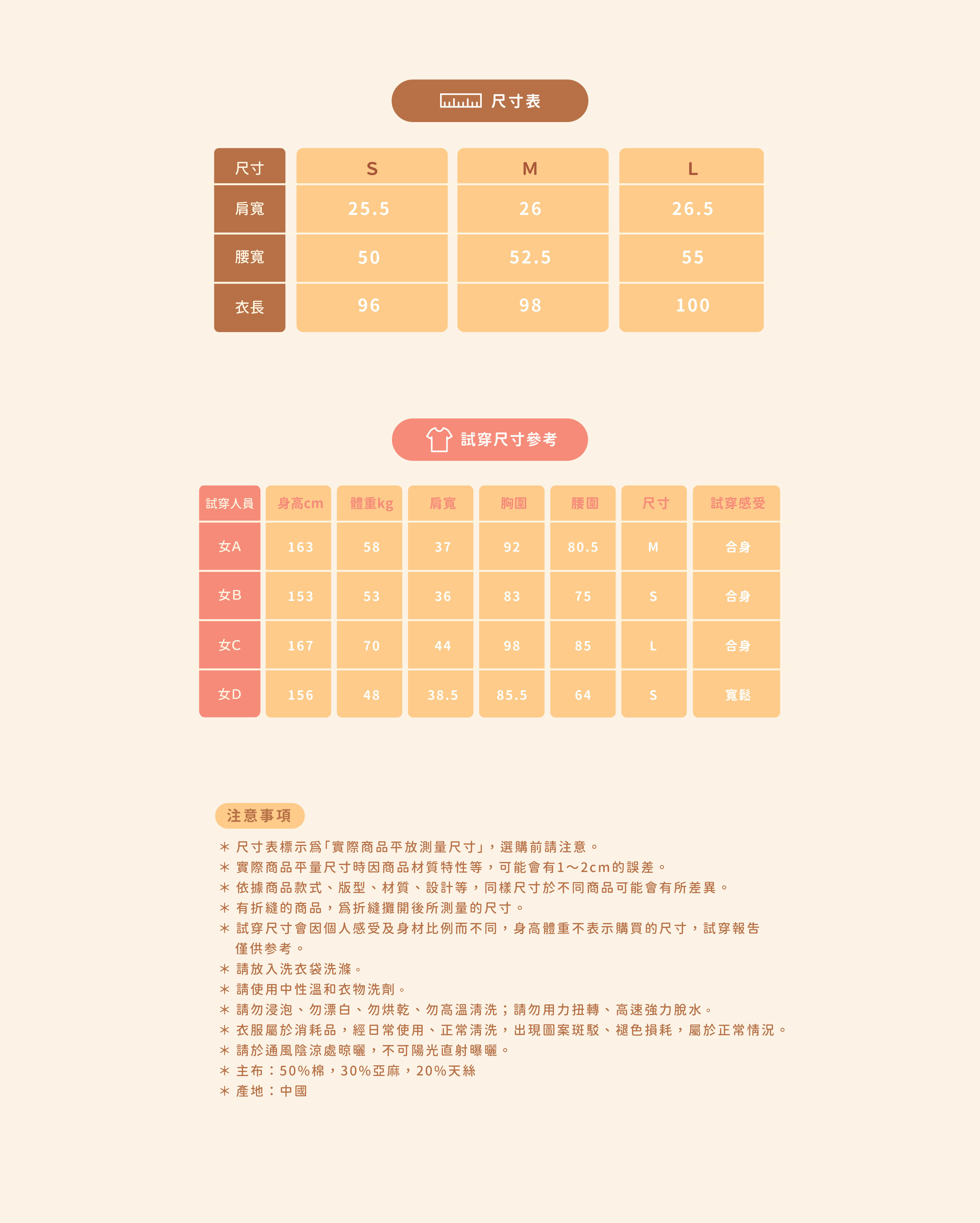*因穿著習慣有所差異,請詳閱尺寸表後下單