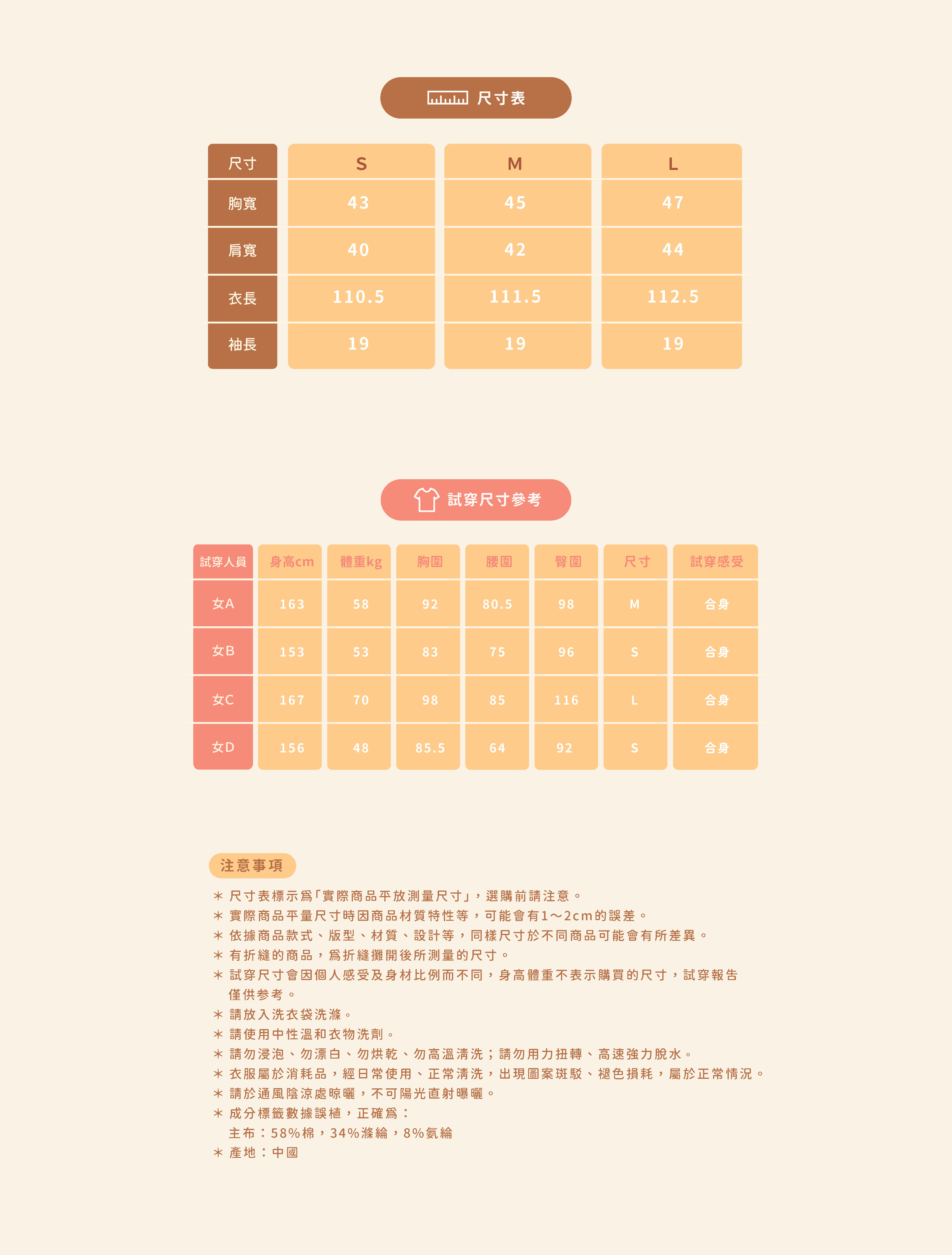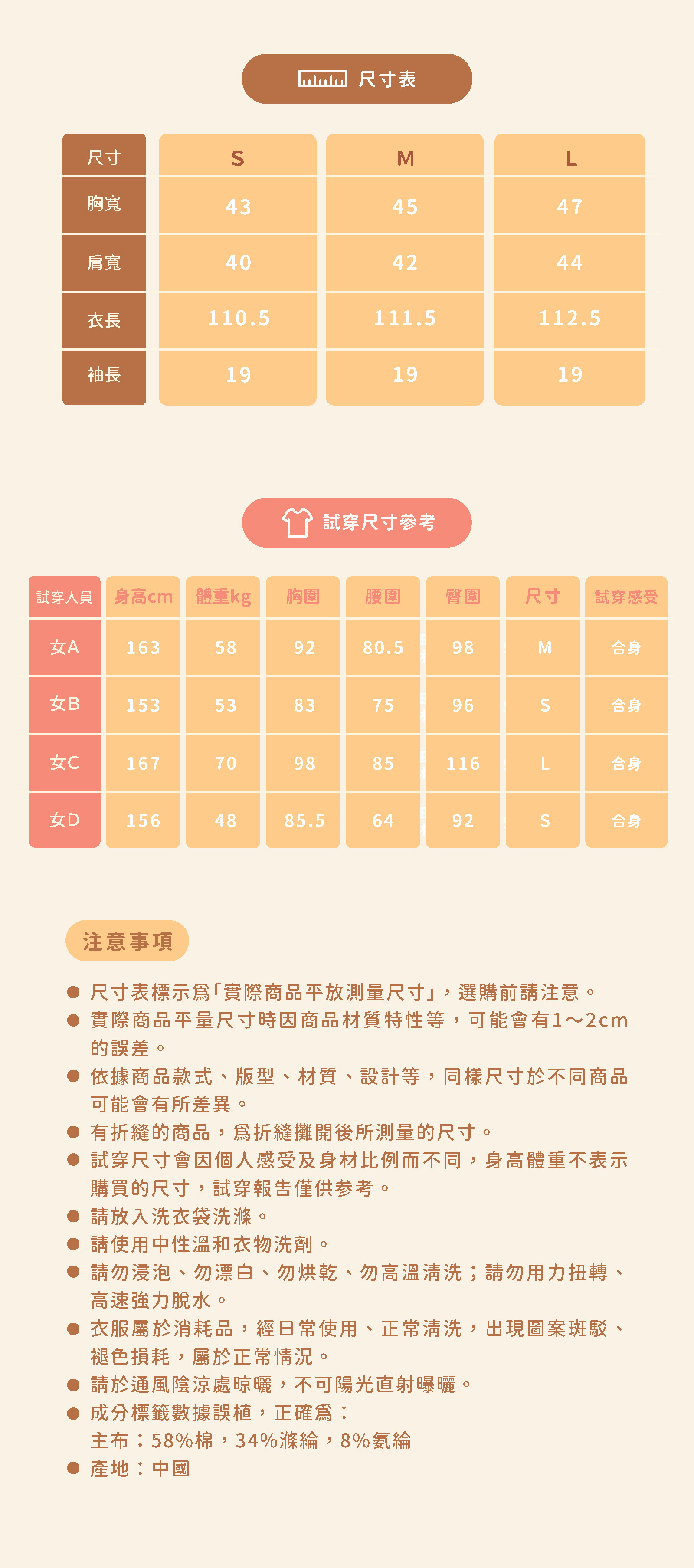 *因穿著習慣有所差異,請詳閱尺寸表後下單