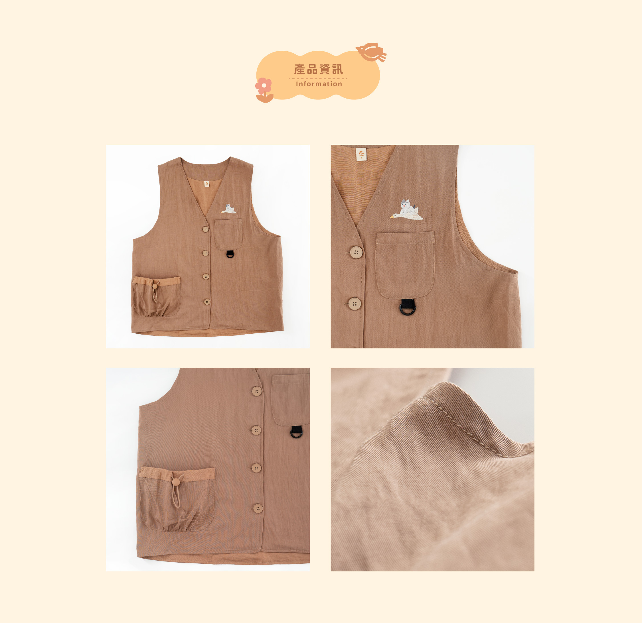 *請勿直接熨燙刺繡及貼布